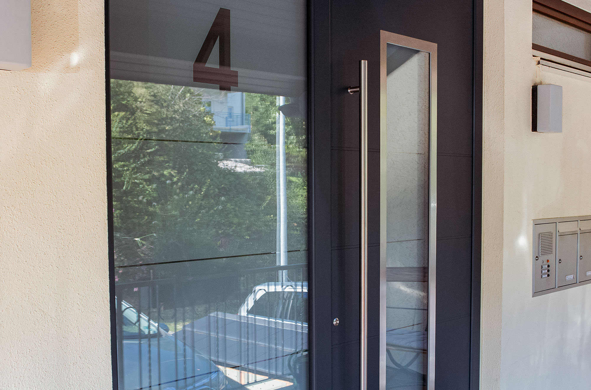 Aluminium-Haustür mit sandgestrahlter Hausnummer