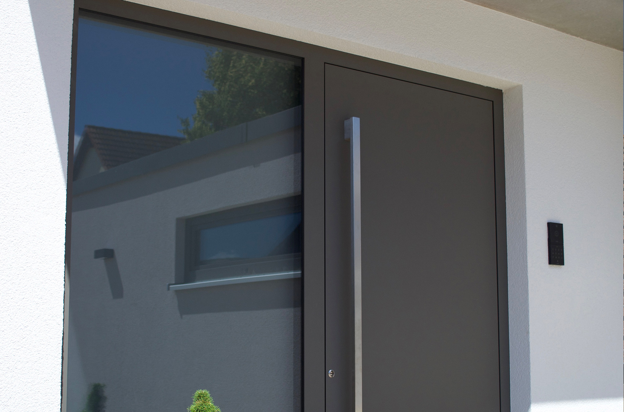 Aluminium-Haustür mit großflächigem Glas-Seitenteil