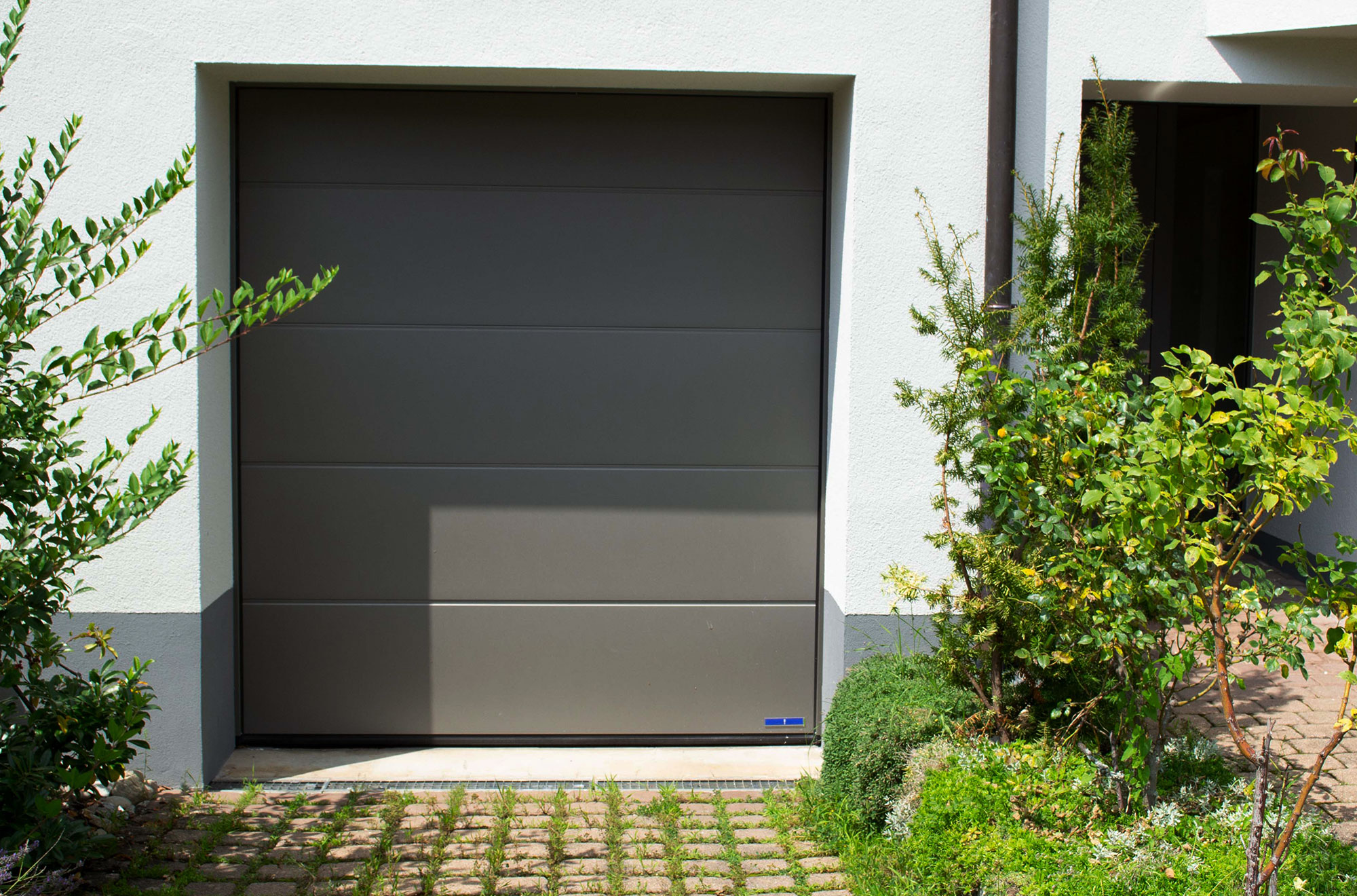 Ein neues Sektionaltor in Graualuminium wurde installiert, ausgestattet mit automatischem Garagentorantrieb und integrierter LED-Beleuchtung. So verbindet das Tor Funktionalität, Sicherheit und modernes Design.