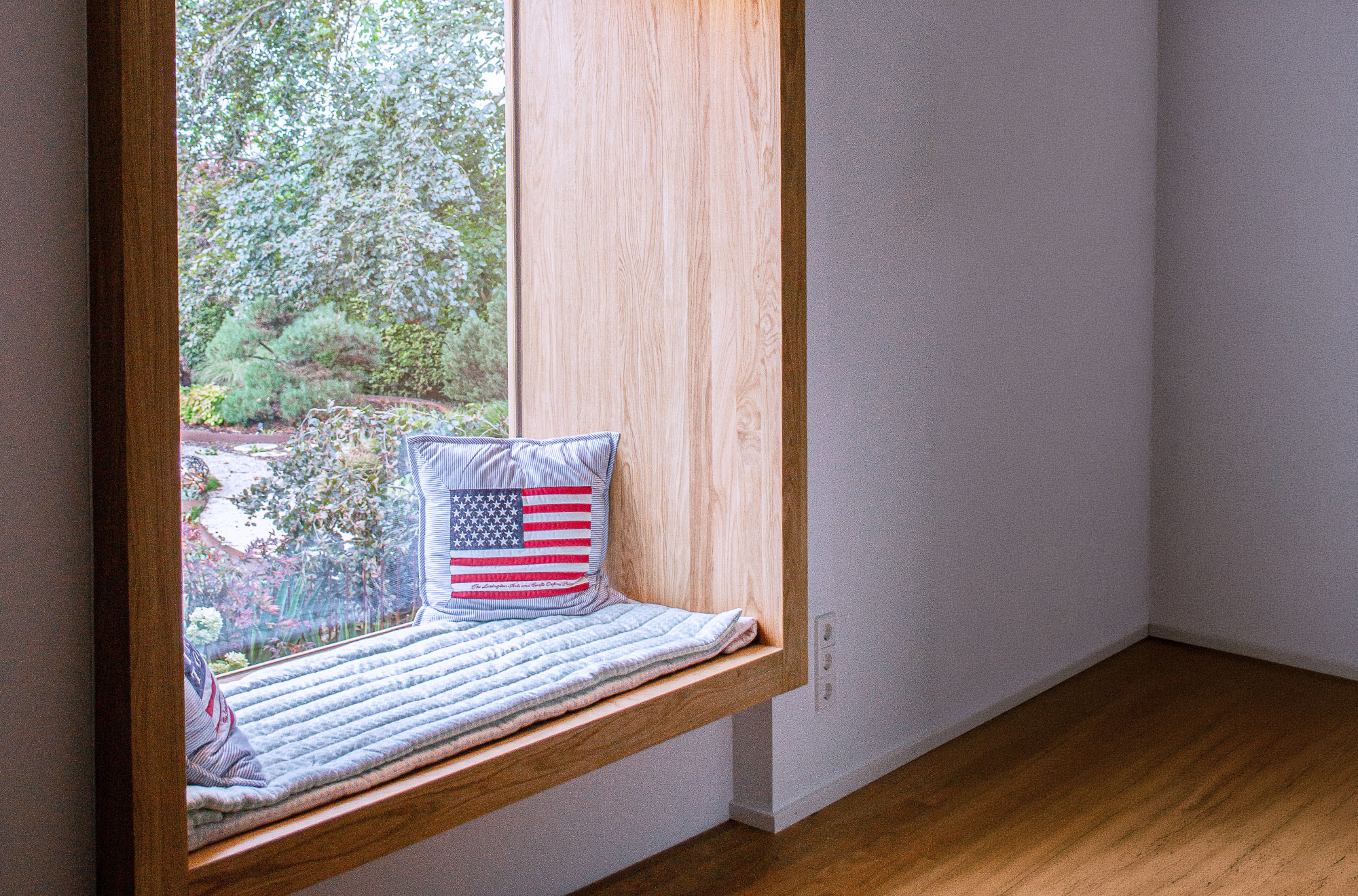 Sitzfenster aus Eiche mit integrierter Beleuchtung